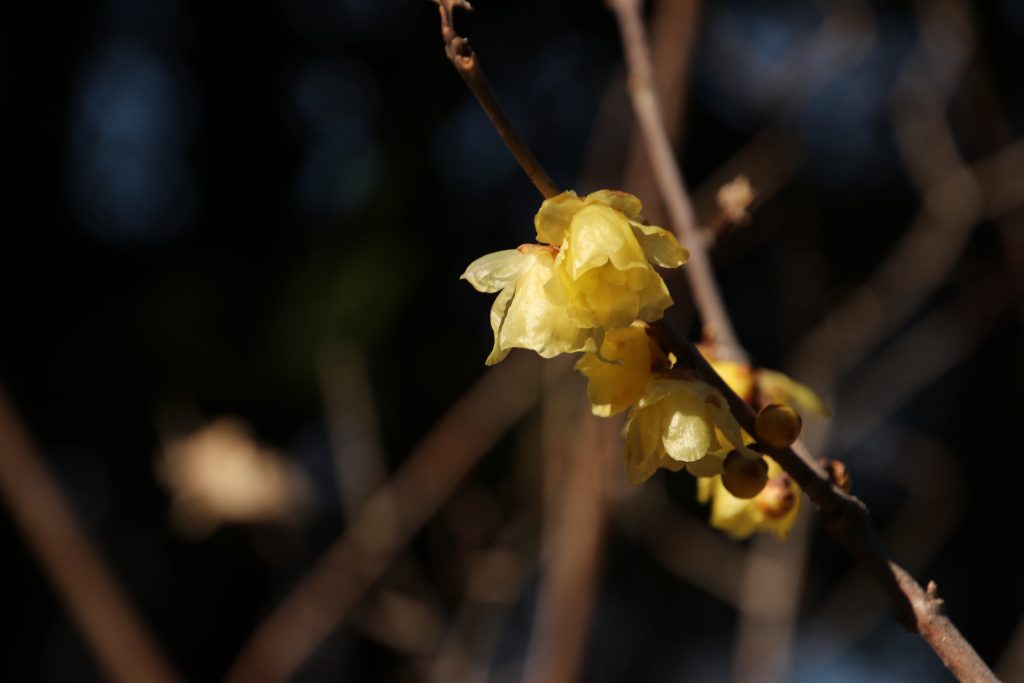 園内の木々は全体に寒々としていましたが、その中で寒風に負けず「蝋梅」と「水仙」が春に向かって咲き始めていました。それぞれに弱い日差しをしっかりと受止めていました。