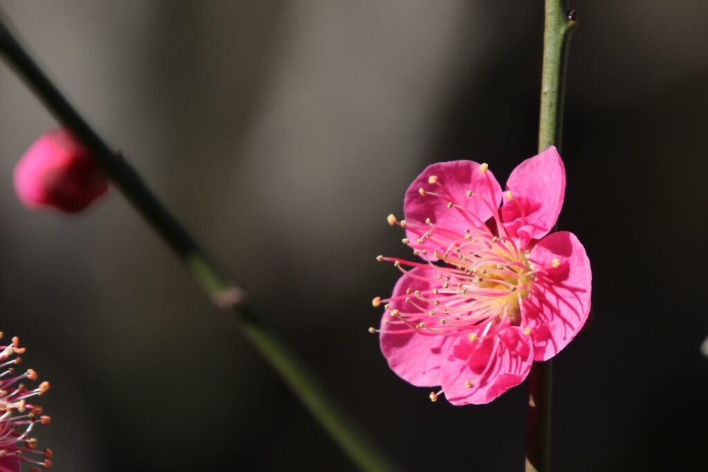 2月の花 梅 2026年2月4日 ブログ 管理人Sです。日本海側や東北、北海道では記録的な雪が続き大変な状況が報道されていますが、関東地方は雪らしい雪どころか雨も降らない状況が続いており、何か申し訳ない気がします。 昨日の午前中近くの公園に梅の花を見に行きました。紅梅は既に盛りを超えていましたが白梅が見ごろを迎えていました。冷たい風に負けず冬の陽射しを花びらいっぱいに受止めていました。 咲き残り?の紅梅も色鮮やかに